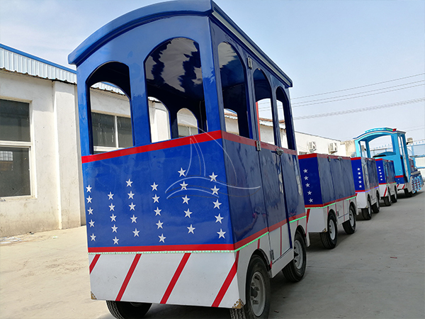 Each cabin is equipped with audio speakers, when the train start run and the audio playing the sounds of the song at the same time. When the amusement train carry the children running in the park, just feel like ride on a real train. Speed adjustable, very safe, this type of mini train can bring the child a very happy and beautiful ride experience. The trackless mall train is suit for both parents and their children to play together in amusement park, playground, shopping center and family entertainment centers.